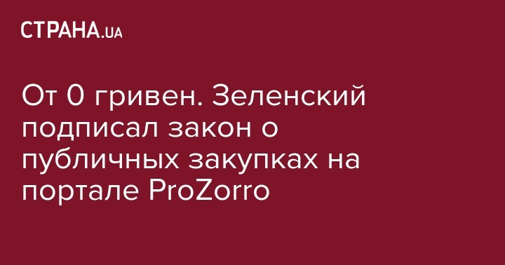 От 0 гривен. Зеленский подписал закон о публичных закупках на портале ProZorro