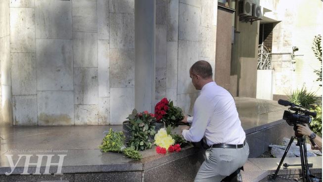9.20 - В Киеве украинцы начали нести цветы к посольству Франции в знак соболезнования жертвам теракта в Ницце.