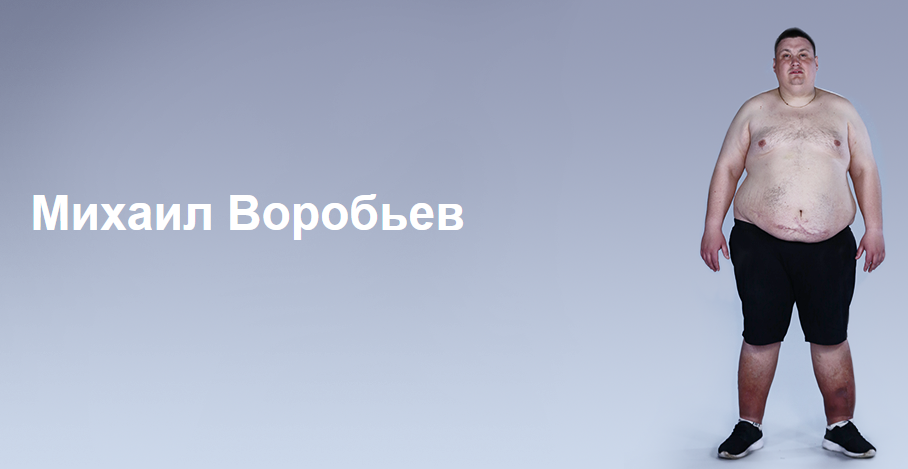 Во втором эфире ушел 34-летний Михаил Воробьев. На шоу он пришел с весом 158 кг, а ушел. похудев до 149 кг. Мужчина рассказывал, что был крупным со школы, но после перелома голени почти два года вынужден был вести малоподвижный образ жизни и это усугубило ситуацию.