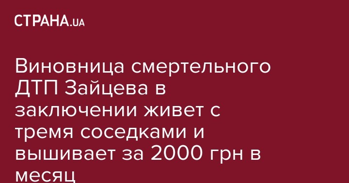 Осужденная на 10 лет лишения свободы Елена Зайцева, признанная виновной в совершении ДТП, в котором погибли 6 человек, отбывает наказание в Покровском исправительном центре №79 вместе с еще 82 женщинами. Об этом пишет УНИАН.