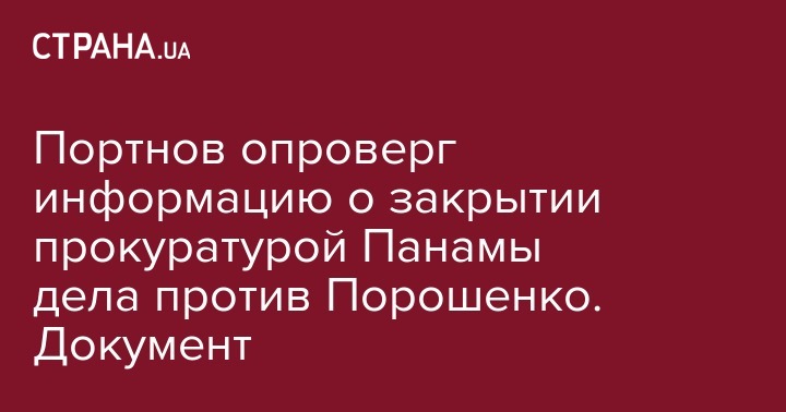 Информация о том, что прокуратура Панамы закрыла уголовное дело против Петра Порошенко, озвученная 16 октября адвокатами экс-президента, не соответствует действительности. Об этом в Telegram-канале сообщил юрист Андрей Портнов, который выступает заявителем по делу.