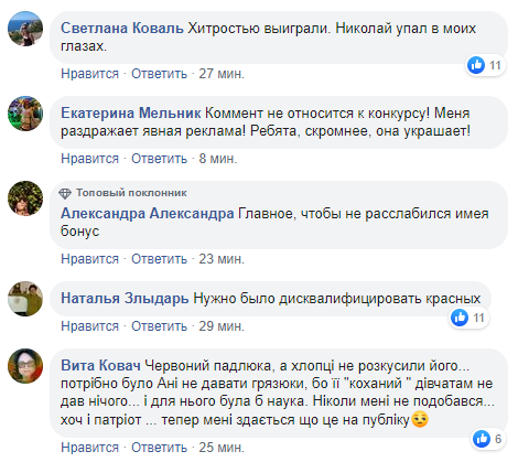 Ведущая Анита Луценко при этом сказала, что не верит, что Николай ничего не смог и что это было похоже на хитрость. Не поверили ему и многие зрители, оставившие гневные комментарии на станице проекта в Facebook.