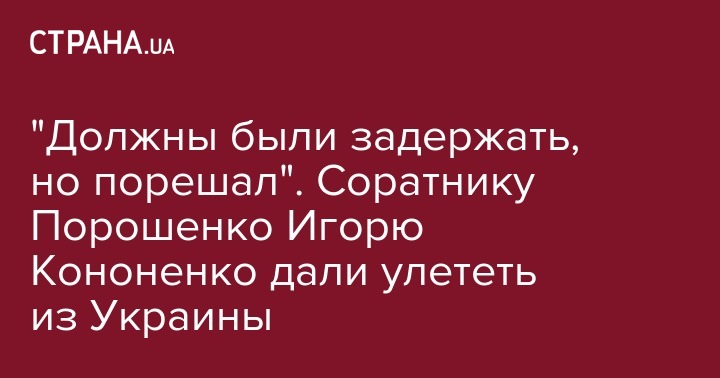 Бывшему народному депутату и соратнику экс-президента Петра Порошенко Игорю Кононенко дали улететь за пределы Украины из аэропорта Борисполь.