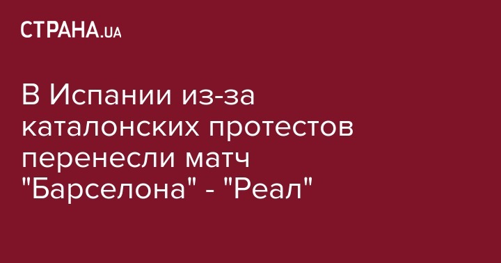Футбольная встреча между каталонской "Барселоной" и мадридским "Реалом" не состоится в Барселоне в назначенную ранее дату - 26 октября, из-за событий в Каталонии. Там продолжаются массовые акции протеста.