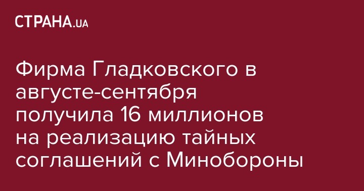 Фирма Гладковского в августе-сентября получила 16 миллионов на реализацию тайных соглашений с Минобороны