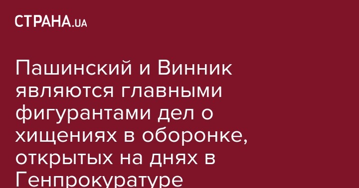 Главными фигурантами трех уголовных производств о хищении средств в оборонной сфере, которые Генеральная прокуратура зарегистрировала 15 октября, являются бывший глава парламентского комитета Нацбезопасности и обороны Сергей Пашинский и секретарь того же комитета Иван Винник. Об этом в Telegram-канале сообщил экс-нардеп Мустафа Найем.