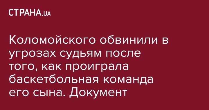 Олигарх Игорь Коломойский после проигрыша баскетбольной команды "Днепр", в которой играет его сын Грегори, в матче с "Прометеем" начал присылать сообщения с угрозами в адрес президента Федерации баскетбола Украины (ФБУ) Михаила Бродского, президента команды "Прометей" Владимира Дубинского и судей.