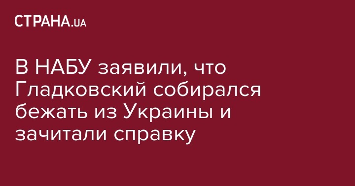 В НАБУ заявили, что Гладковский собирался бежать из Украины и зачитали справку