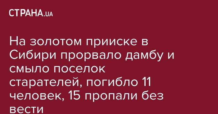 Сегодня ночью, 19 октября, в России произошла страшная трагедия. На прииске в Красноярском крае Сибири (около 02.00 по киевскому времени - Ред.) прорвало дамбу и мощный селевой поток смыл временный поселок старателей. Не менее 11 человек погибло.