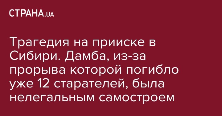 Появились новые детали страшной трагедии в Красноярском крае Сибири, где прорвало дамбу и смыло поселок старателей, в результате чего погибло 12 человек (ранее сообщалось об 11 погибших и 15 пропавших без вести - Ред.).