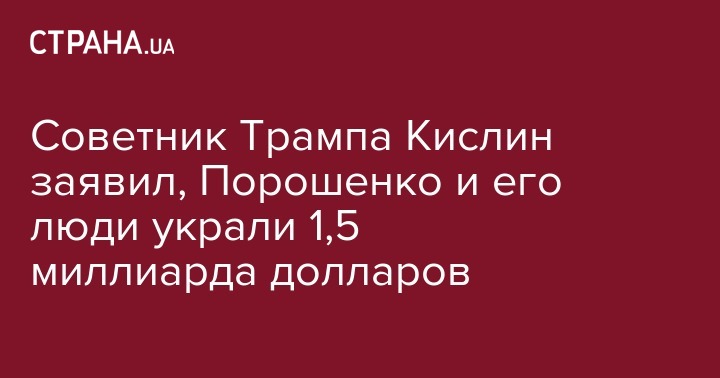 Американский бизнесмен украинского происхождения, советник президента Соединённых штатов Америки Сэм Кислин заявил, что во время президентства Петра Порошенко его окружением были незаконно поделены полтора миллиарда долларов. Об этом сообщает РИА "Новости".