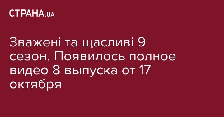 Появилось полное видео очередной серии телепроекта "Зважені та щасливі", который идет на СТБ, 9 сезон 8 выпуск.