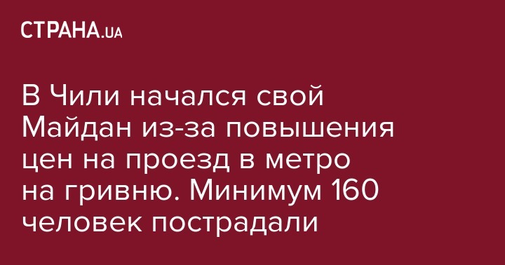 Протесты, которые переросли в беспорядки и столкновения с полицией, начались в Сантьяго в понедельник после того, как стоимость проезда в метро в среднем выросла на 30 песо ($0,04 или 1,06 грн) до максимума в 850 песо ($1,2 или 30 гривен). Участники беспорядков нанесли ущерб нескольким станциям метро и сожгли не менее 10 автобусов. В связи с сложившейся ситуацией президент страны Себастьян Пиньера объявил в столице чрезвычайное положение.