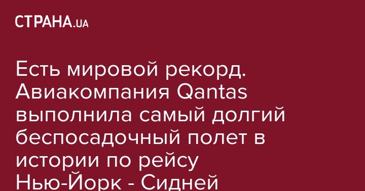 В истории мировой гражданской авиации установили новый рекорд. Австралийская авиакомпания Qantas успешно провела первый в истории беспосадочный рейс между Нью-Йорком и Австралией.