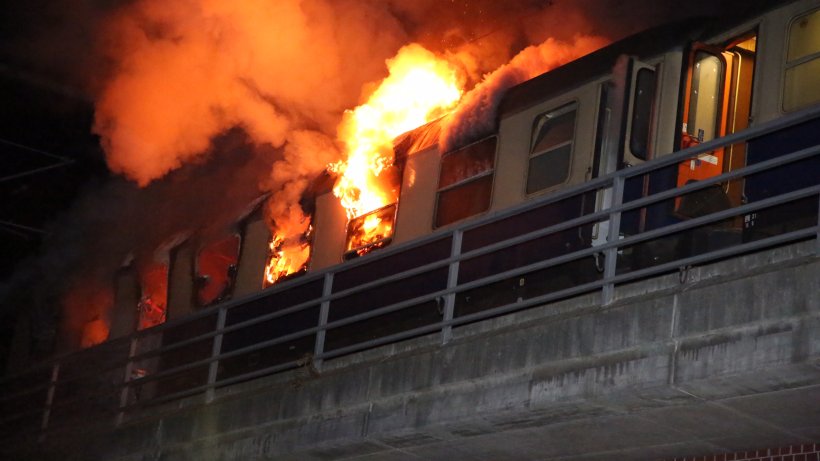 Огонь вспыхнул в вагоне передней части поезда, а дым начал быстро распространяться по составу. Горящий поезд остановился в 20.00 на станции Белвью, где спасатели эвакуировали пассажиров.
