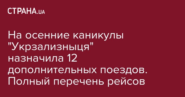 На осенние каникулы "Укрзализныця" назначила 12 дополнительных поездов. Полный перечень рейсов