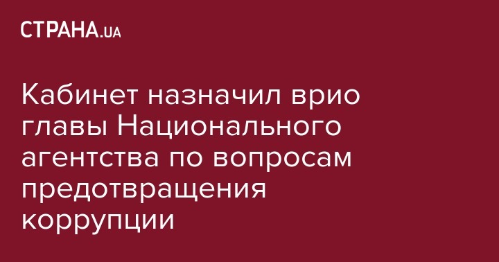 Кабинет назначил врио главы Национального агентства по вопросам предотвращения коррупции