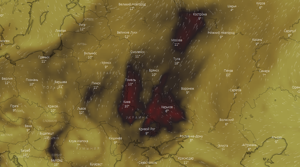 Чуть свободнее дышится во Львове и белорусском Пинске, и такие же серьезные проблемы с воздухом как в Украине и России можно отметить и в Сербии.