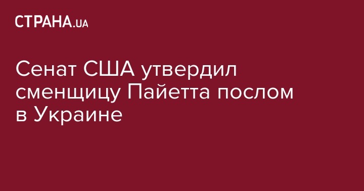 "Мари Л. Йованович утверждена Сенатом США в качестве посла США в Украине вместо Джеффри Пайетта в критический момент истории страны", - сказано в сообщении.