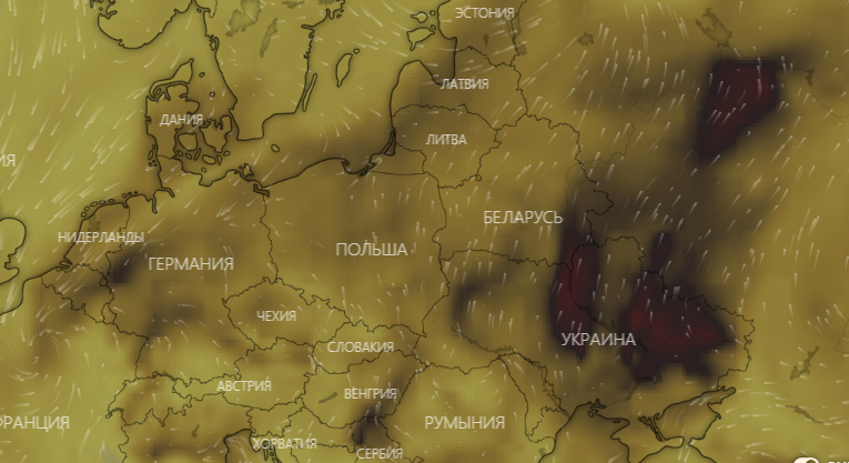 Над Украиной висит огромное облако угарного газа, аналогов которому нет в Европе. Об этом свидетельствуют данные онлайн-сервиса Windy, который анализирует движение воздушных масс по всему миру.