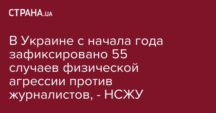 Национальный союз журналистов Украины (НСЖУ) приводит новые данные о случаях агрессии против журналистов. Так в Украине за 9 месяцев этого года зафиксировано 55 таких случаев.