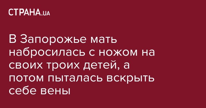 В Запорожье 30-летняя женщина набросилась с ножом на своих троих маленьких детей и нанесла им ранения. После этого мать попыталась наложить на себя руки. Об этом сообщается на сайте Запорожского ГУНП.