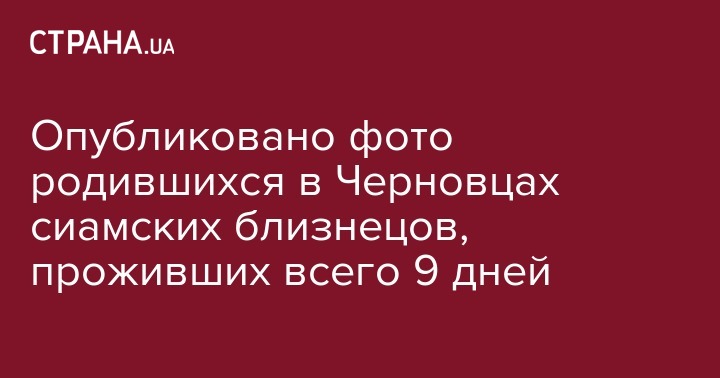 Украинцам впервые показали фото сиамских близнецов из Черновцов, которые появились на свет в роддоме Черновцов в ночь на 28 сентября. За судьбой малышек с общим телом и двумя головами следила вся страна. Новорожденные прожили всего 9 дней. Уникальный кадр, сделанный на третий день после рождения малышей, показали в эфире программы "Касается каждого" на одном из украинских телеканалов.