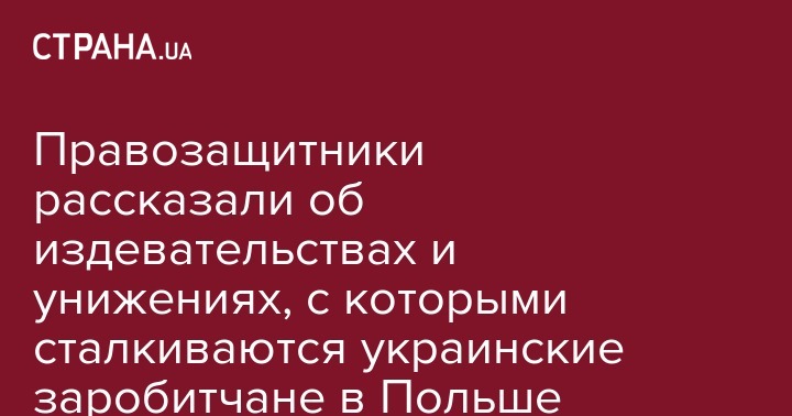 По словам главы профсоюза "Трудовая солидарность" Виталия Махинько, помогающего украинцам в Польше, заробитчане становятся жертвами "вопиющих случаев убийств, избиений и унижений". Он рассказал, что правоохранительные органы нередко игнорируют заявления от украинских граждан и отказываются проводить расследования. Махинько добавил, что инциденты с украинцами происходят ежедневно, при этом сами поляки "не боятся" расправляться с гастарбайтерами, поскольку их за это не наказывают.