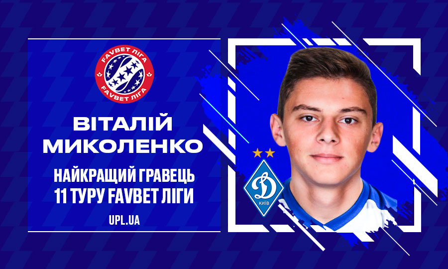 Лучшим игроком 11 тура чемпионата Украины по футболу признали защитника киевского Динамо Виталия Миколенко. Об этом передает пресс-служба УПЛ.