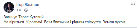 "Погиб Тарас Кутовой. Не верится. В отчаянии. Всем близким и родным соболезнования. Земля пухом" - написал экс-министр спорта Игорь Жданов.