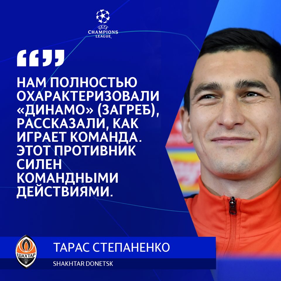 Полузащитник Шахтера Тарас Степаненко на предматчевой пресс-конференции рассказал, что в команде соперника есть сильные футболисты. Он отметил нападающего и тройку ребят, которые играют в центре. "Противник силен командными действиями" - сказал Степаненко.
