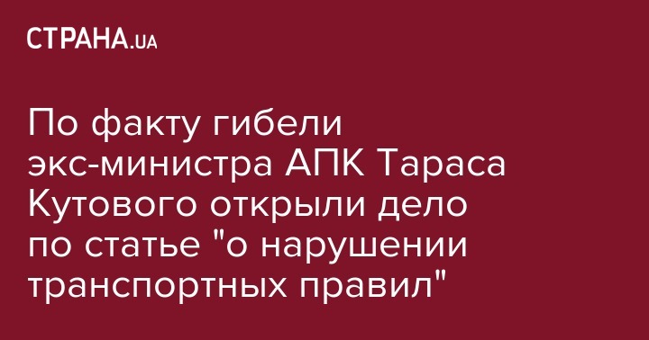 По факту авиакатастрофы в Полтавской области вертолета и гибели бывшего министра аграрной политики и продовольствия Тараса Кутового открыто уголовное производство по статье о нарушении правил на транспорте.