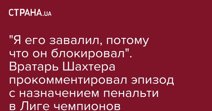 "Я его завалил, потому что он блокировал". Вратарь Шахтера прокомментировал эпизод с назначением пенальти в Лиге чемпионов