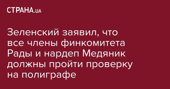 Зеленский заявил, что все члены финкомитета Рады и нардеп Медяник должны пройти проверку на полиграфе