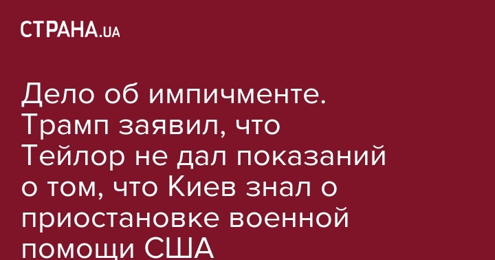 Дело об импичменте. Трамп заявил, что Тейлор не дал показаний о том, что Киев знал о приостановке военной помощи США