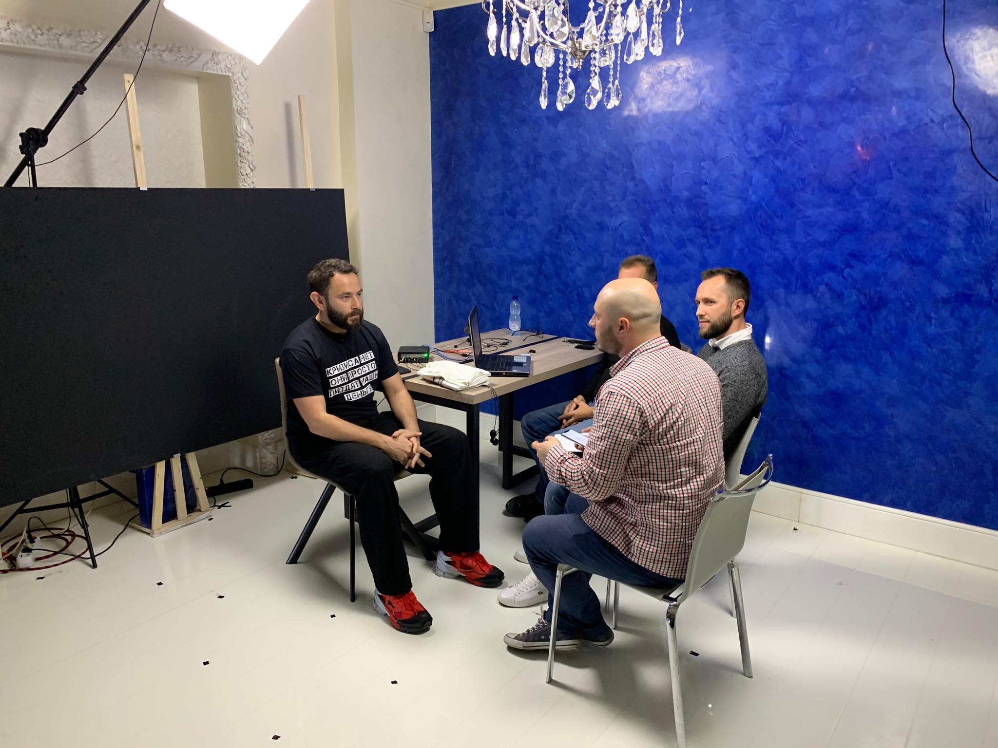 В квартире находится очень много людей, все они едва помещаются. Депутат Александр Дубинский, который после обвинений во взяточничестве решил пройти тест на детекторе лжи в прямом эфире, пригласил на "полиграф-шоу" журналистов. Во время прохождения полиграфа в помещении оставят только операторов, чтобы сохранить тишину.