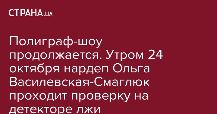 Полиграф-шоу продолжается. Утром 24 октября нардеп Ольга Василевская-Смаглюк проходит проверку на детекторе лжи