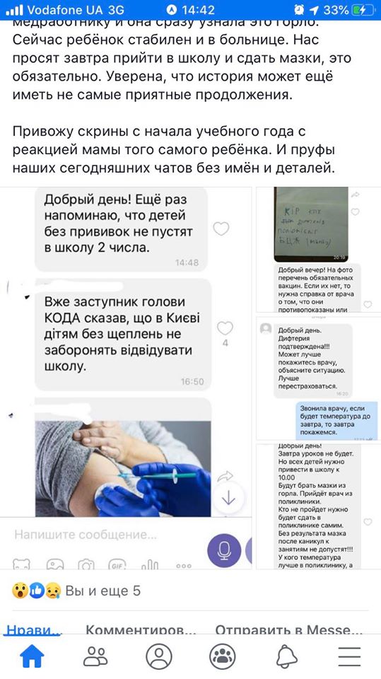 В Киеве в одной из школ на Позняках объявили карантин из-за дифтерии. Об этом на своей странице в соцсети написала киевлянка-родитель столичного ученика. По ее словам несколько дней назад заболел школьник, у которого не было прививки от дифтерии. Сегодня его диагноз уже лабораторно подтвержден.