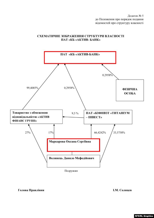 В материале говорится, что в 2013 году Маркарова и ее супруг Даниил Волынец приобрели банка у братьев-"регионалов" Сергея и Андрея Клюевых. В следующем году НБУ признал "Актив-банк" неплатежеспособным и отправил его на ликвидацию.