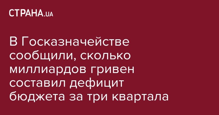 Государственный бюджет Украины за январь-сентябрь 2019 года сведен с дефицитом 20,675 млрд грн, по общему фонду дефицит составил 26,12 млрд грн. Об этом говорится в отчете Государственной казначейской службы.