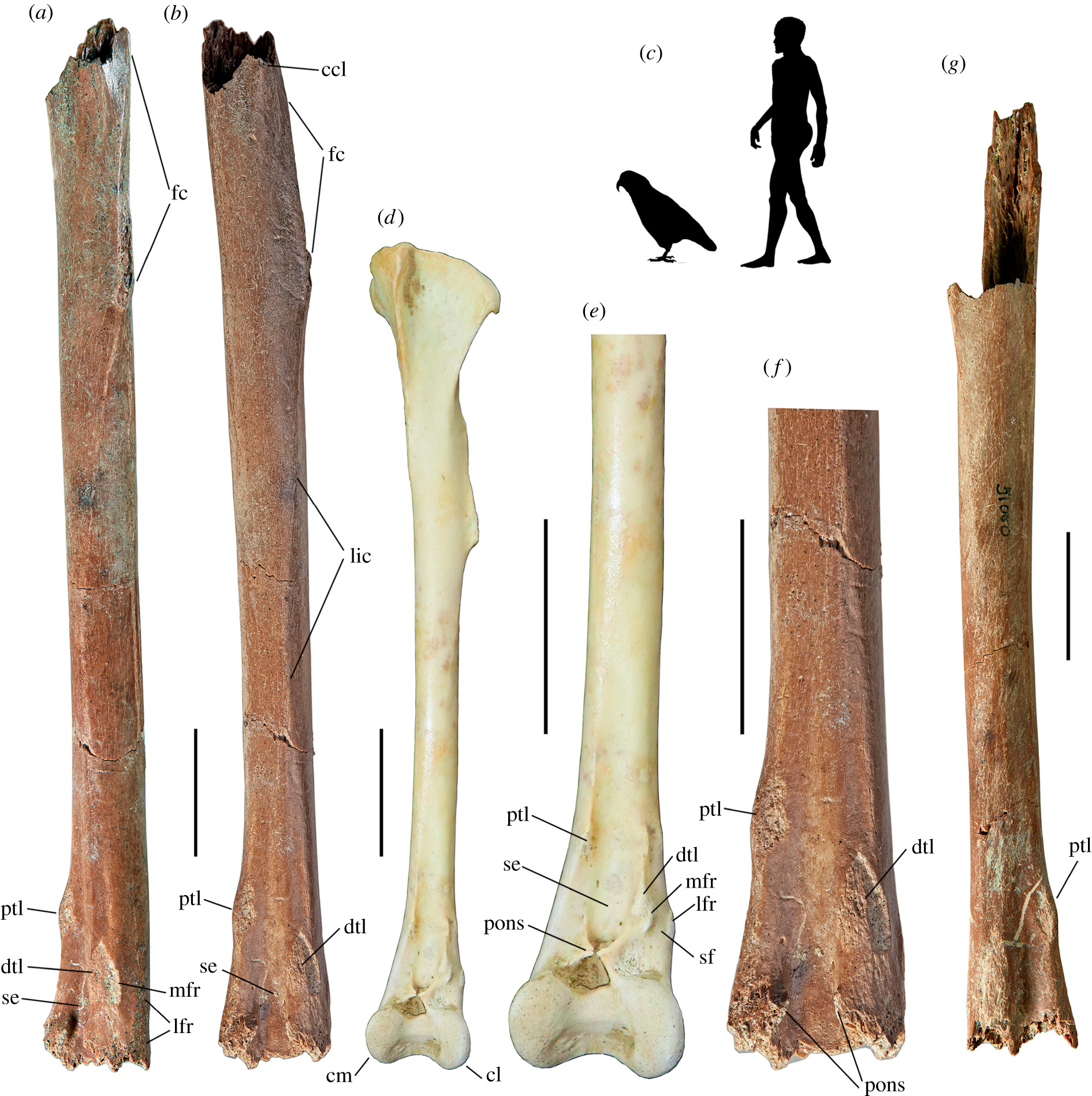 Окаменелости оказались двумя неполными тибиотарзусами - костями между бедром и цевкой птиц. Находку сравнили с большим количеством скелетов птиц из коллекции Музея Южной Австралии и изображениями на сайте Смитсоновского национального музея естественной истории.