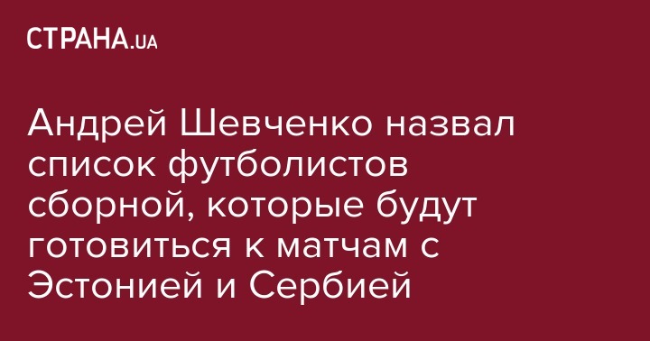 Андрей Шевченко назвал список футболистов сборной, которые будут готовиться к матчам с Эстонией и Сербией