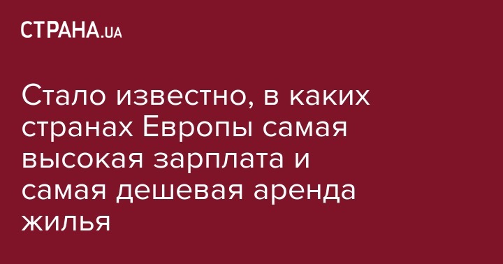 Стало известно, в каких странах Европы самая высокая зарплата и самая дешевая аренда жилья