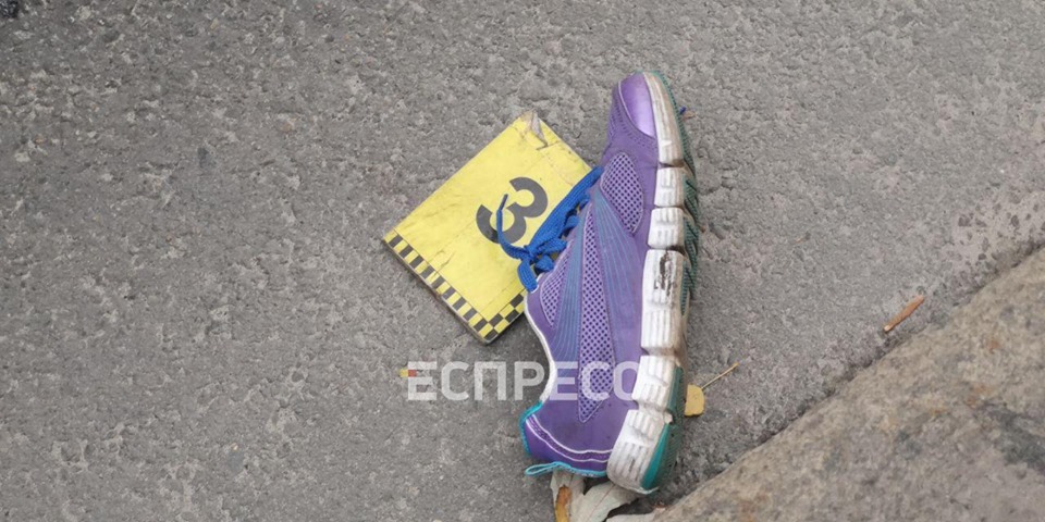 От удара один из кроссовок, в которые была обута женщина, залетел на расположенную одним уровнем выше автомобильную развязку.