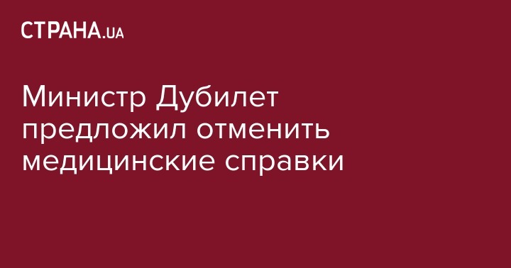 За отмену такого документа, как медицинская справка выступил министр Кабинета Министров Дмитрий Дубилет. Об этом он написал на своей странице в соцсети Facebook.
