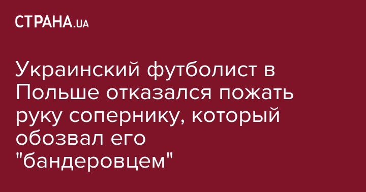 Полузащитник польской "Ягеллонии" Тарас Романчук отказался пожимать руку футболисту "Вислы" Доминику Фурману перед игрой чемпионата Польши из-за того, что тот обозвал его "бандеровцем". Об этом сообщает УНИАН. Видеозапись произошедшего опубликовали в твиттер-микроблоге.