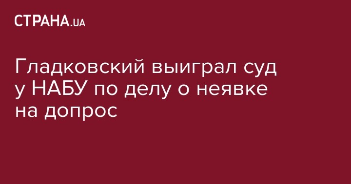 Ранее НАБУ обратилось в суд с требованием привлечь Гладковского к ответственности за неявку по вызову детективов 19 июля этого года.