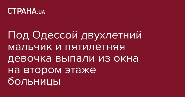 Двухлетний мальчик и пятилетняя девочка выпали из окна больничной палаты, расположенной на втором этаже. Инцидент произошел в Великомихайловской больнице в Одесской области. Пострадавшие малыши - брат и сетстра. В результате падения девочка получила тяжелую черепно-мозговую травму, а мальчик - повреждение позвоночника. Об этом сообщается на сайте ГУНП Одесской области.