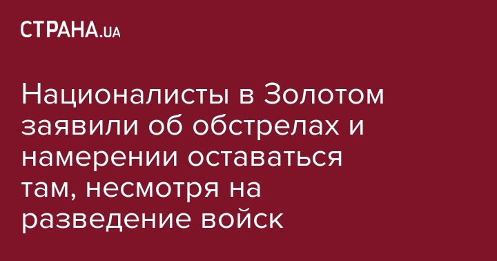 Националисты, которые находятся в Золотом и выступают против разведения сил на Донбассе, намерены остаться в населенном пункте, если власть начнет отвод войск, также они утверждают, что ночью населенный пункт был обстрелян противником. Соответствующее заявление опубликовано в Telegram-канале "Последний блокпост. Нет капитуляции".