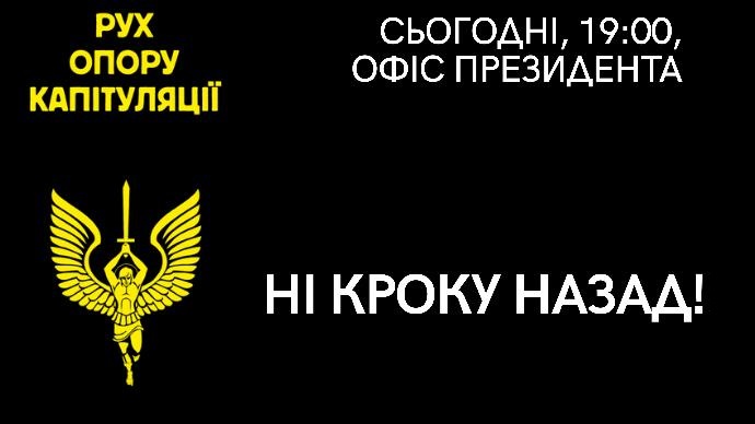 19:10 "Сегодня началась капитуляция. Это отступление, а не отведение" - начали акцию под стенами Офиса президента.